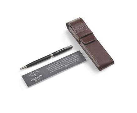 Presentado en una bella caja acompañado de un estuche de piel a juego de la casa Parker.