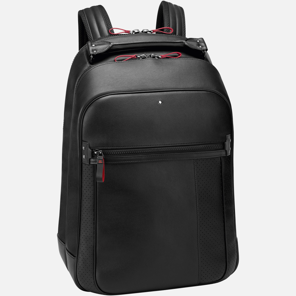 Esta mochila grande, cuyo diseño se inspira en el automovilismo vintage y luce un estilo urbano joven y dinámico, combina piel suave y perforada.
