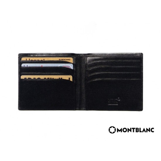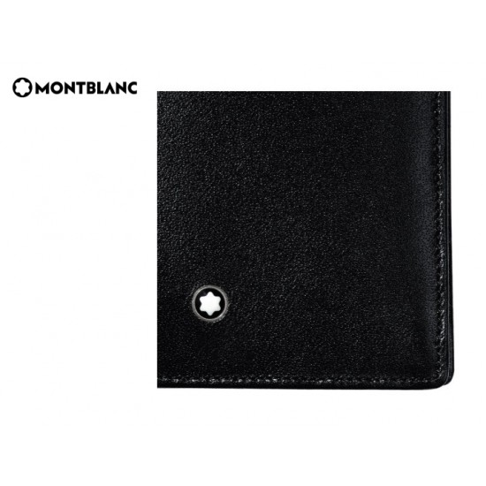 Cartera Montblanc Meisterstück. Elegancia en cartera de piel para hombre. Un clásico para siempre. Piel de primera calidad duradera con cuatro pespuntes. Garantía de la maison Montblanc. La cartera ideal para caballero. Piel de becerro europea en color negro. Acabado brillo único Montblanc. Logo Montblanc con anillo paladiado. Interior confeccionado con tejido Jacquard con el emblema de Montblanc.