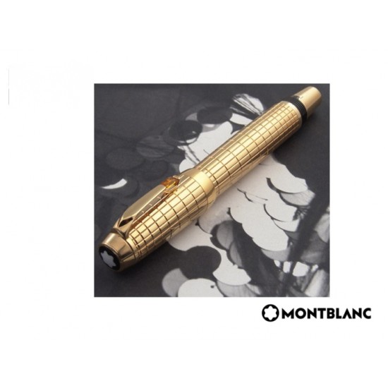 Montblanc crea una joya única de la escritura. Tributo a los detalles. Homenaje a lo bello. El cuerpo de la estilográfica está realizado en oro. Una reproducción exacta del Boheme en piel. El cuerpo se surca por un hilo en oro a semejanza de la piel. El saber hacer de Montblanc no tiene semejanza en el mundo de la escritura. Destaca el clip del capuchón con una bella piedra preciosa en cilindro sintética engastada. La luz y la elegancia se palpan en el menor detalle como es el clip.