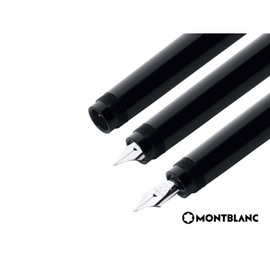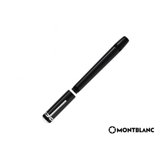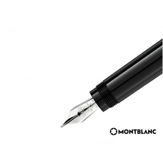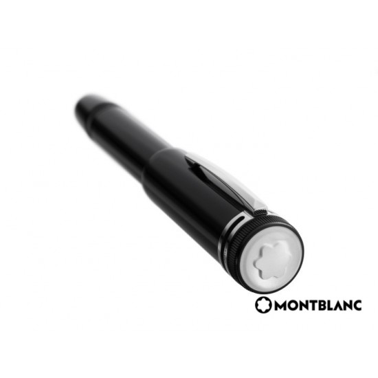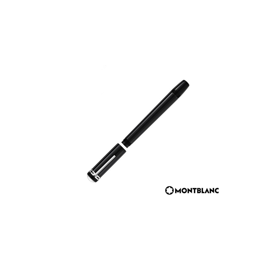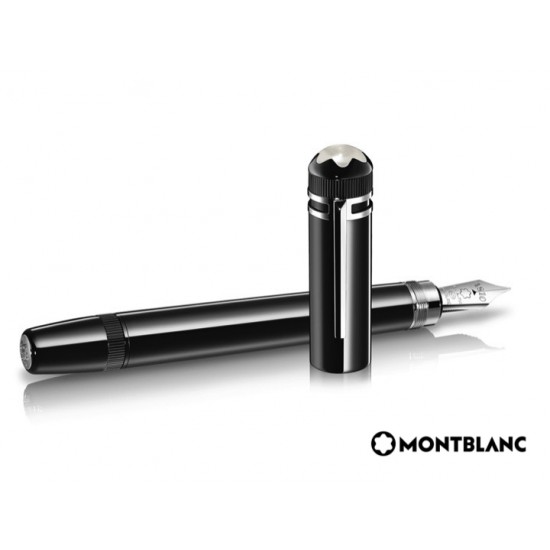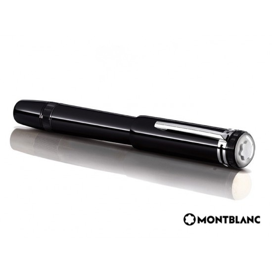Réplica perfecta del diseño de la pluma Montblanc de 1912. Precioso depósito y capuchón en laca negra brillante con detalles platinados. Sobresale el clásico logo de Montblanc en laca de color madreperla cubierto por una caperuza transparente. Cuerpo todo en preciosa laca negra como el azabache. Detalles platinados como rayos de luna en medio de la noche.
